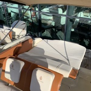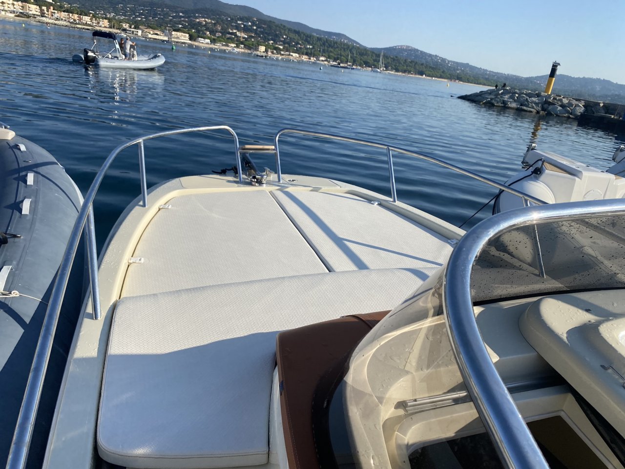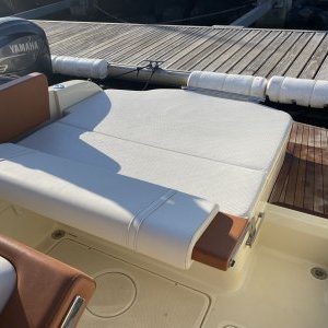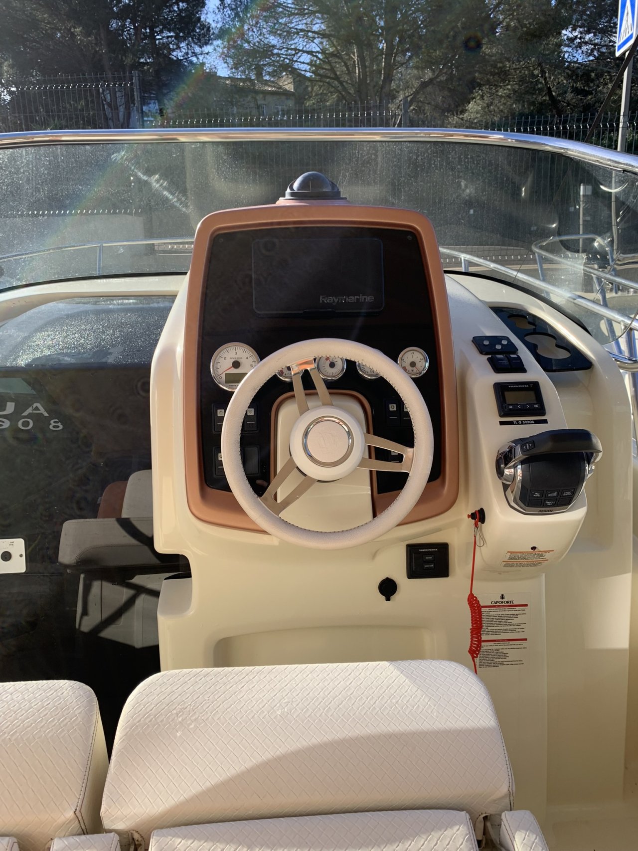 Intérieur spacieux et fonctionnel, le volant est réglé à la verticale, pour une navigation précise et confortable. Le moteur in-bord augmente l’espace disponible à bord, ainsi que l’élégance de ses lignes. L’Invictus capoforte CX 250 est un concentré de design et de confort, qui se distingue par le soin apporté à chaque détail. La plate-forme de baignade est une passerelle pratique et l’accès privilégié à la mer, également un élément qui donne des formes élégantes, tandis que son moteur à l’intérieur qui minimise l’impact visuel. Parfait pour ceux qui aiment profiter de la mer dans un confort total, sans sacrifier la fonctionnalité, la performance ou l’efficacité. Le bateau est équipé d’un grand bain de soleil fixe a l’avant, d’un taud de soleil caché sous le bain de soleil qui va couvrir toute la partie déjeuné, d’une table de cockpit, d’un double siège pilote donc le dossier est réversible pour avoir un grand espace déjeuné de cockpit avec une belle table en teck, une douche de pont, une cabine 2 couchages avec WC et un frigo, d’un grand bain de soleil arrière, et d’un propulseur d’étrave.