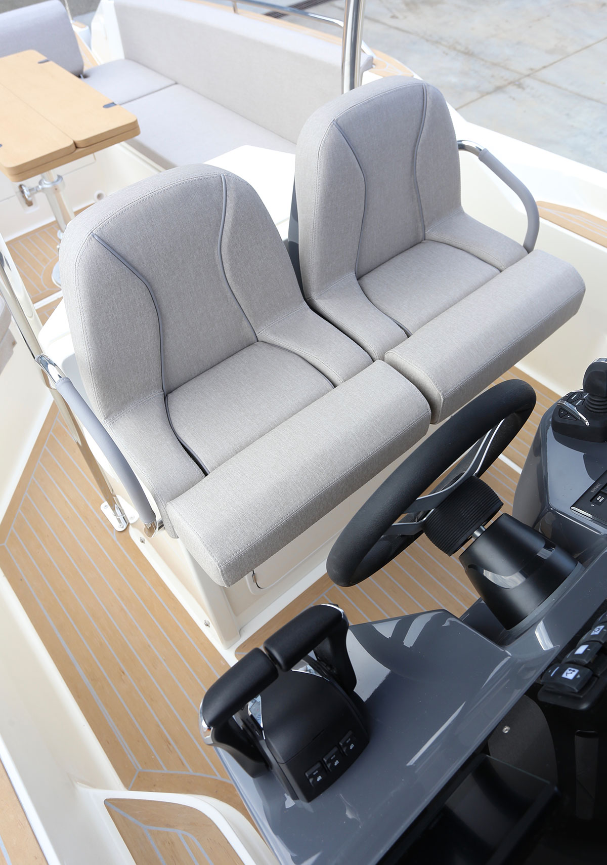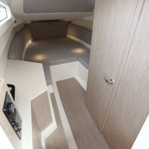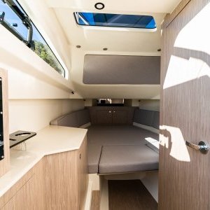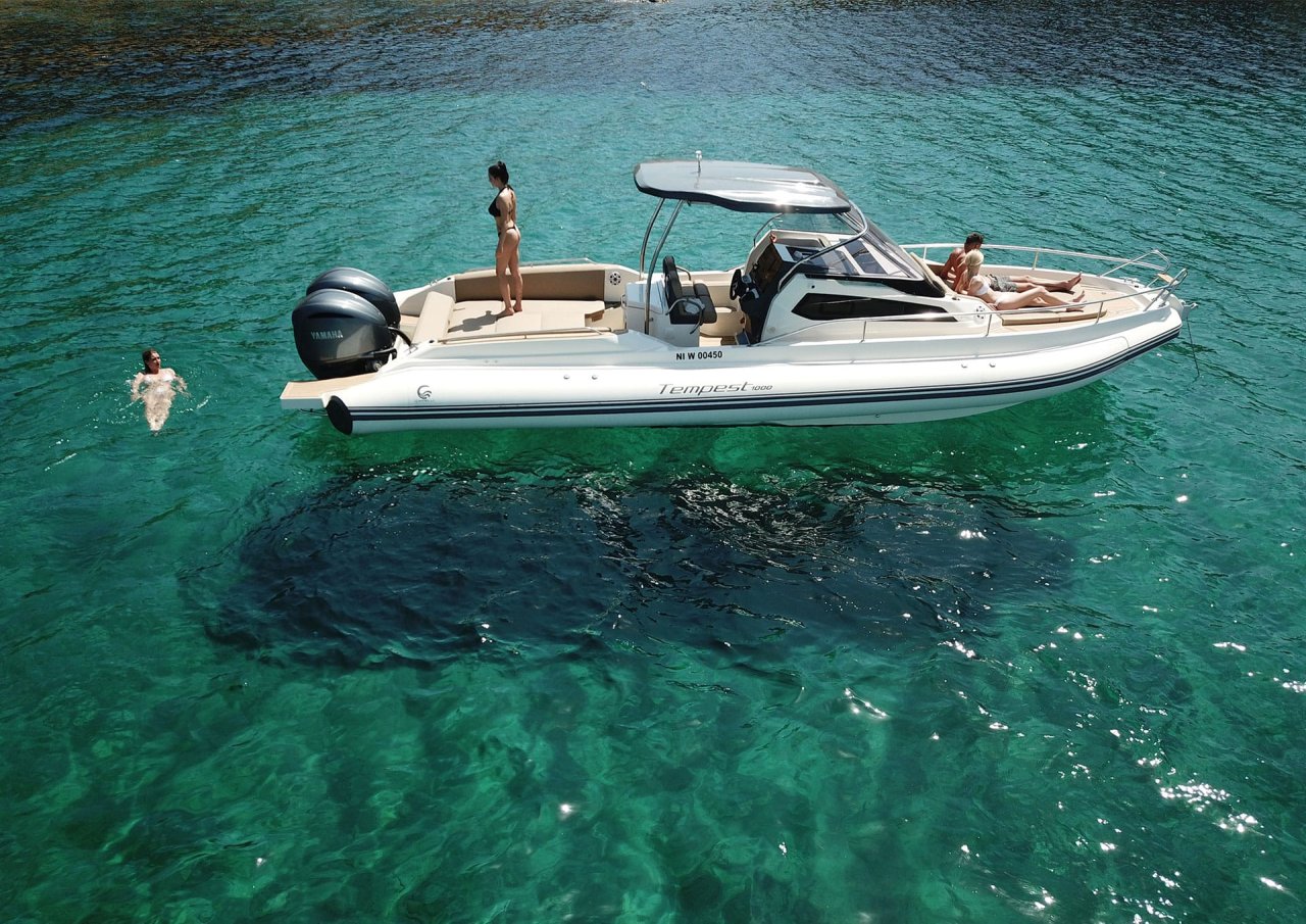 Le Tempest 1000 WA est spacieux et permet une circulation plus facile lors de son utilisation, les passages latéraux autour de la console permet un accès pratique sur les plateformes de bain avant et arrière, il est équipé d’une cabine avec deux hublots pour un couchage confortable et une salle d’eau indépendante avec un toilette et un évier . Un carré arrière particulièrement accueillant, , où l’on peut se tenir à huit autour de la table rectangulaire amovible, suffisante pour un apéritif ou un pique-nique, vous pourrez positionner le taud de soleil sur 2 pillons en carbone qui se raccorde au T- top afin de déjeuner à l’abri du soleil. cette dernière se transforme également en bain de soleil arrière. Le bateau est équipé de la douchette de pont pour vous rincer après la baignade d’un frigo d’une radio . Pour plus de facilité, pour vos arrêts baignade le bateau dispose d’un guindeau électrique d’une douchette de pont et d’un grand bain de soleil avant nouvel génération type lounge avec accoudoir et maintient lombaire. Il a un très bon passage en mer, le bilan "pilotage" tient en trois mots : plaisir, performances, sécurité.