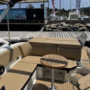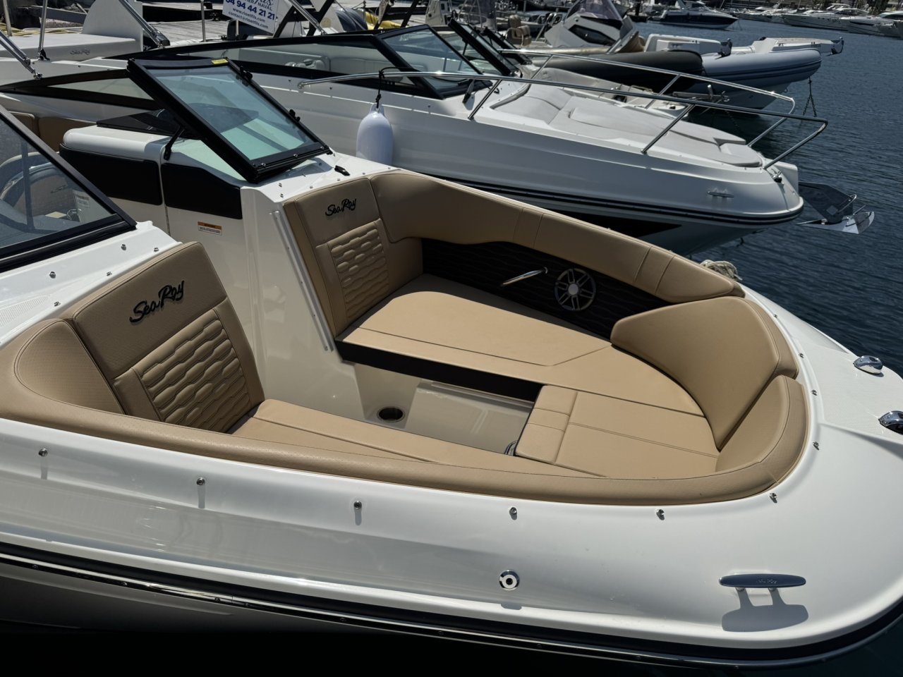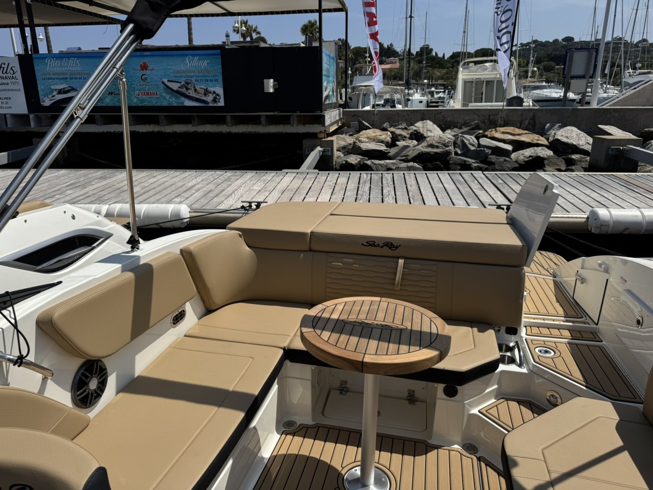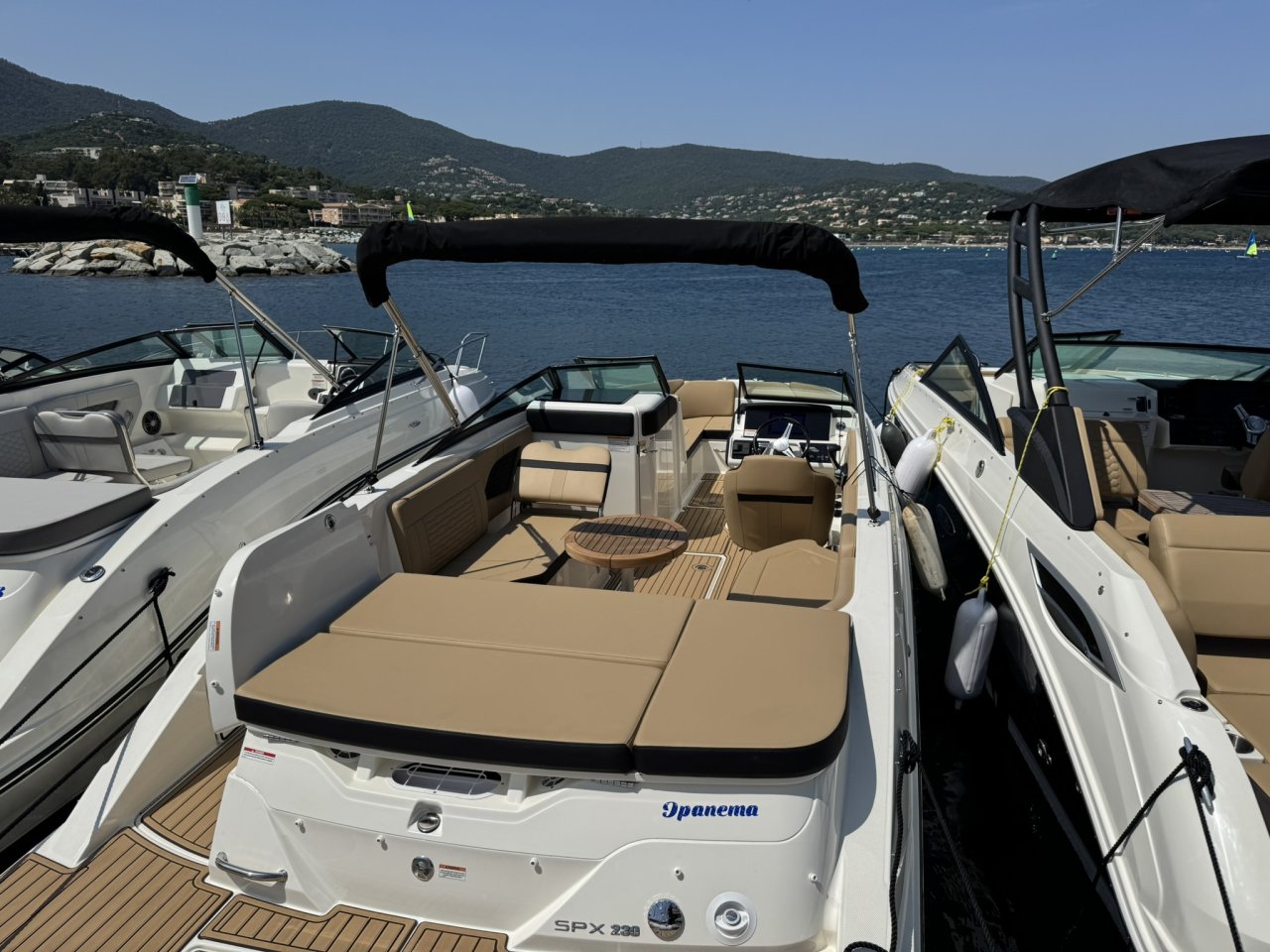 le bateau searay 230 spx peut accueillir 10 personnes à bord ,il est l’incarnation d’un bateau sportif avec de nombreuses places assises.