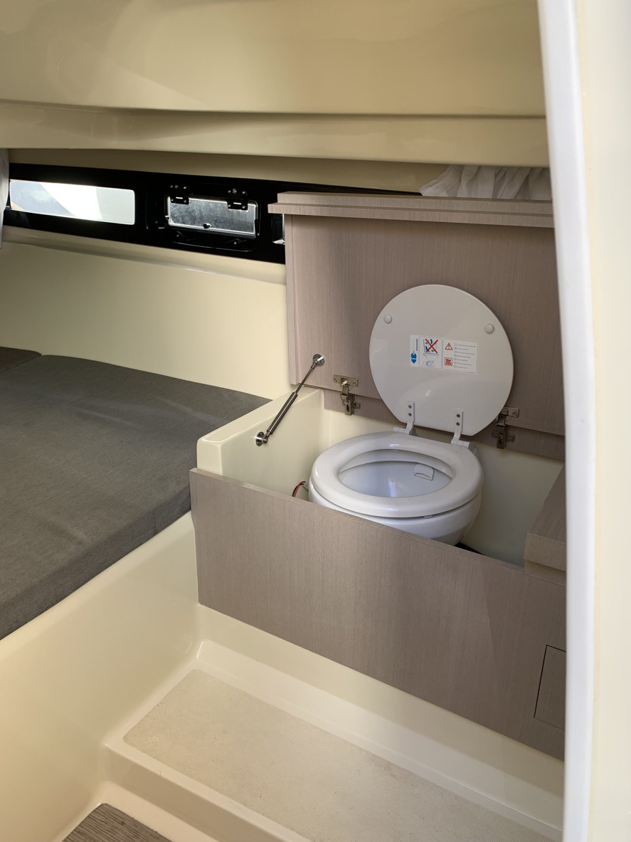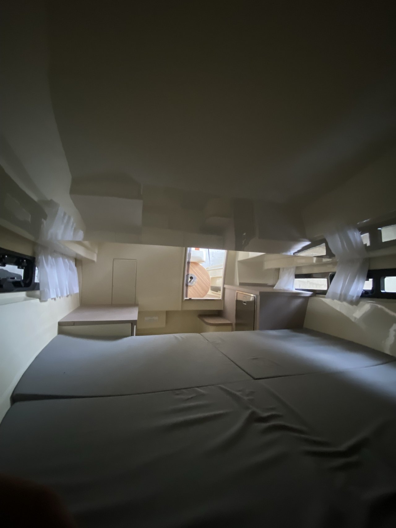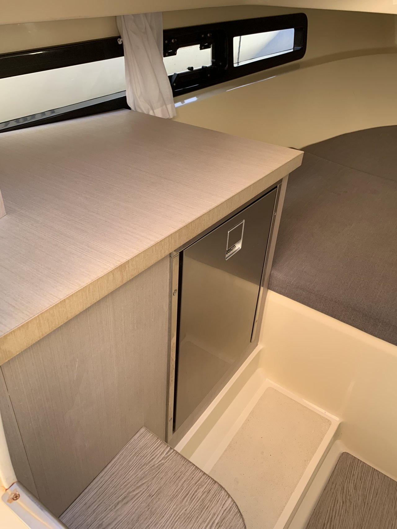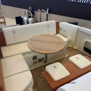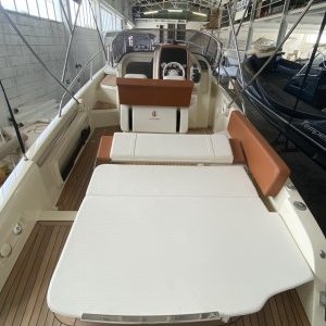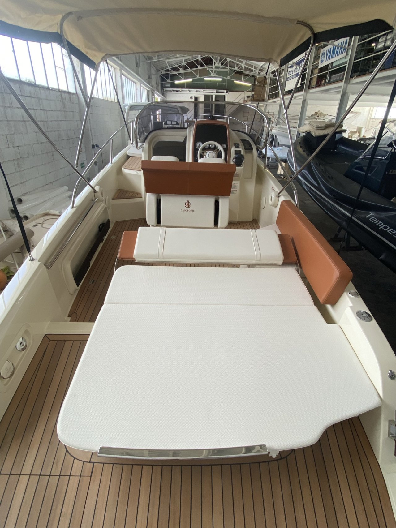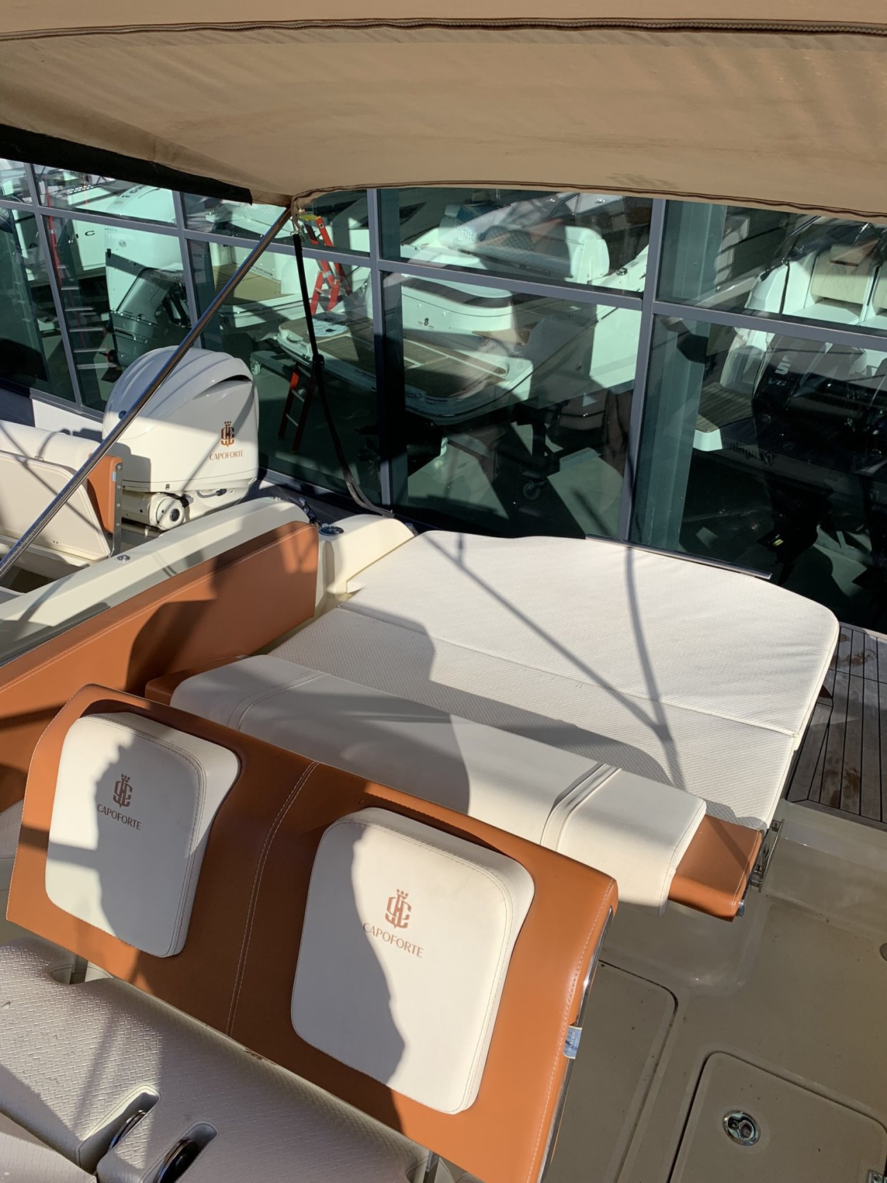 Intérieur spacieux et fonctionnel, le volant est réglé à la verticale, pour une navigation précise et confortable. Le moteur in-bord augmente l’espace disponible à bord, ainsi que l’élégance de ses lignes. L’Invictus capoforte CX 250 est un concentré de design et de confort, qui se distingue par le soin apporté à chaque détail. La plate-forme de baignade est une passerelle pratique et l’accès privilégié à la mer, également un élément qui donne des formes élégantes, tandis que son moteur à l’intérieur qui minimise l’impact visuel. Parfait pour ceux qui aiment profiter de la mer dans un confort total, sans sacrifier la fonctionnalité, la performance ou l’efficacité. Le bateau est équipé d’un grand bain de soleil fixe a l’avant, d’un taud de soleil caché sous le bain de soleil qui va couvrir toute la partie déjeuné, d’une table de cockpit, d’un double siège pilote donc le dossier est réversible pour avoir un grand espace déjeuné de cockpit avec une belle table en teck, une douche de pont, une cabine 2 couchages avec WC et un frigo, d’un grand bain de soleil arrière, et d’un propulseur d’étrave.
