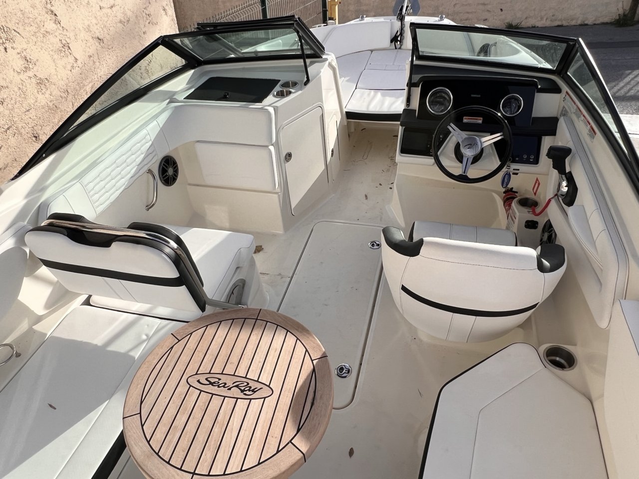 Le Sea Ray SPX 210 est l’incarnation d’un bateau sportif avec un support de wake sur la tour, les nombreuses places assises vous offrent une belle convivialité autour d’une table. Ce bateau est équipé. d’un moteur Mercruiser 200cv. Que vous privilégiez la pêche, les sports nautiques ou la croisière toute la journée dans le confort, le 210 SPX est parfaitement adapté.