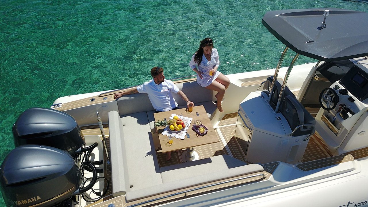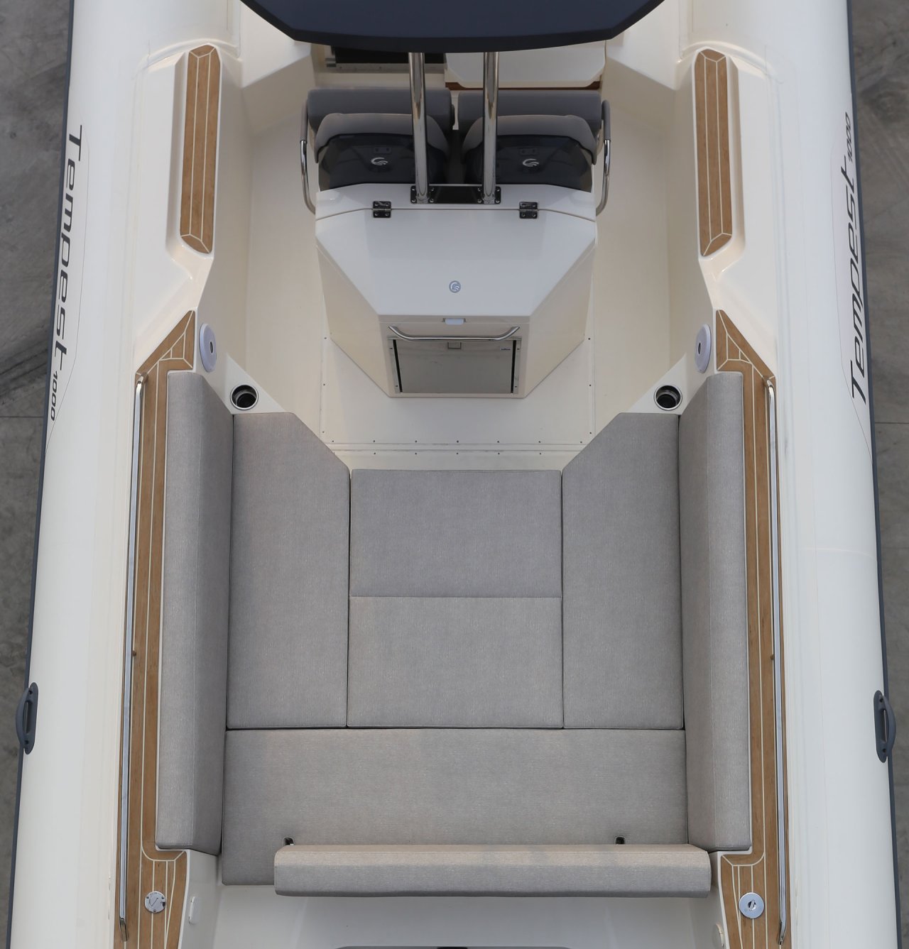 Le Tempest 1000 est spacieux et permet une circulation facile lors de son utilisation, les passages latéraux autour de la console permet un accès pratique sur les plateformes de bain avant et arrière, il est équipé d’une cabine avec deux hublots, abrite un lit pour siestes à l’ombre et l’équipement radio Bluetooth. Un cockpit "quatre zones" pont avant, cabine, pilotage, carré arrière particulièrement accueillant, où l’on peut se tenir à huit autour de la table, suffisante pour un apéritif ou un pique-nique, ce dernier se transforme également en bain de soleil arrière. Le bateau est équipé de la douchette de pont pour vous rincer après la baignade. Pour plus de facilité, pour vos arrêts baignade le bateau dispose d’un guindeau électrique. Il a un très bon passage en mer, le bilan "pilotage" tient en trois mots : plaisir, performances, sécurité.