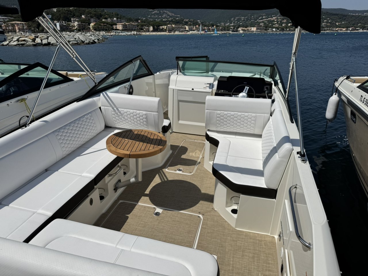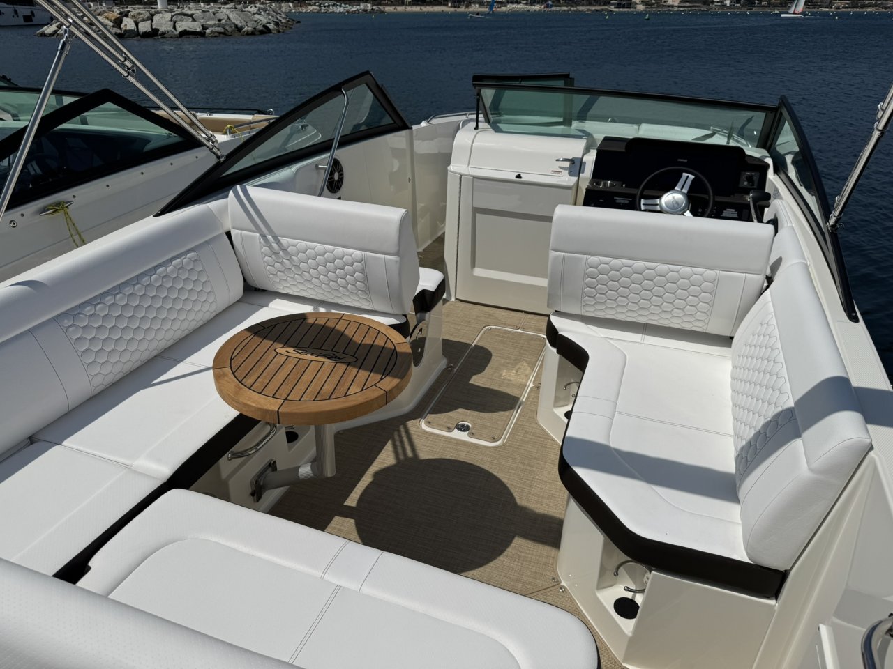 Avec son cockpit spacieux, sa cabine incluant un WC et un petit couchage pour enfants, ses différents sièges convertibles, le bain de soleil arrière, et son système audio bluetooth avec les hauts parleurs de cockpit, le SDX 250 OB est le bateau idéal afin de profiter pleinement d’une journée entre amis ou en famille tout en pratiquant les sports nautiques.