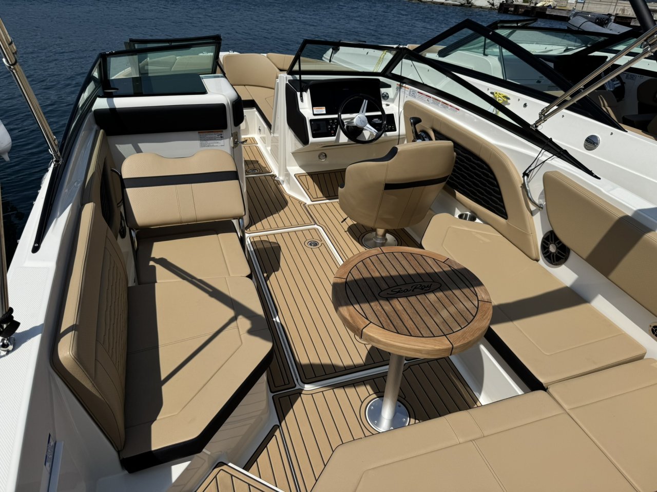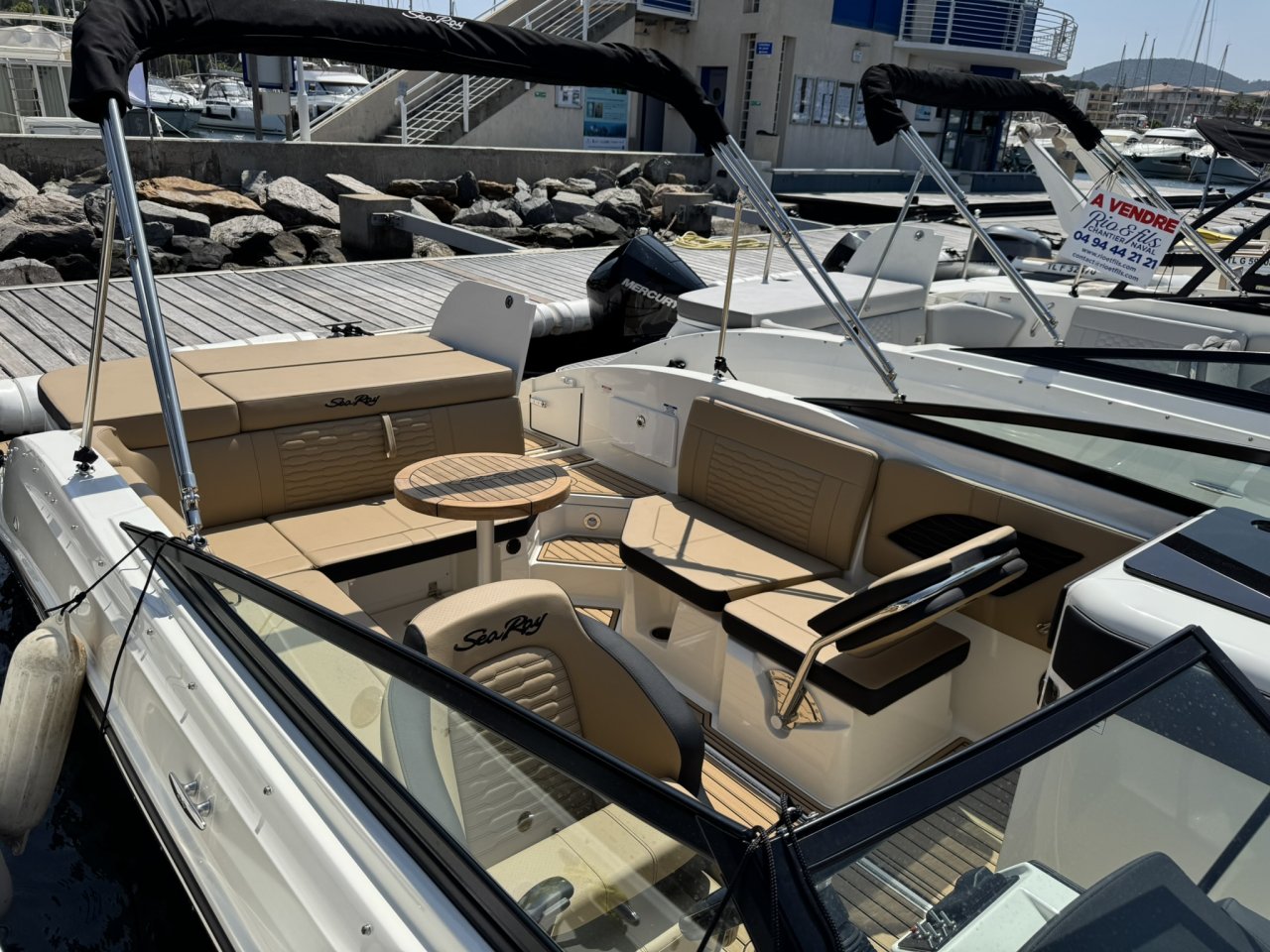 le bateau searay 230 spx peut accueillir 10 personnes à bord ,il est l’incarnation d’un bateau sportif avec de nombreuses places assises.